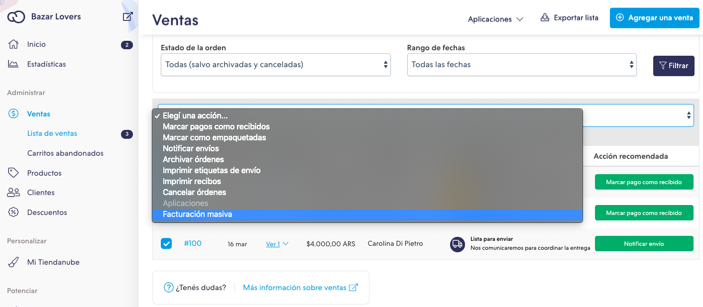 Podés hacerlo de dos formas: individual o masiva, según cómo prefieras gestionar tus órdenes.