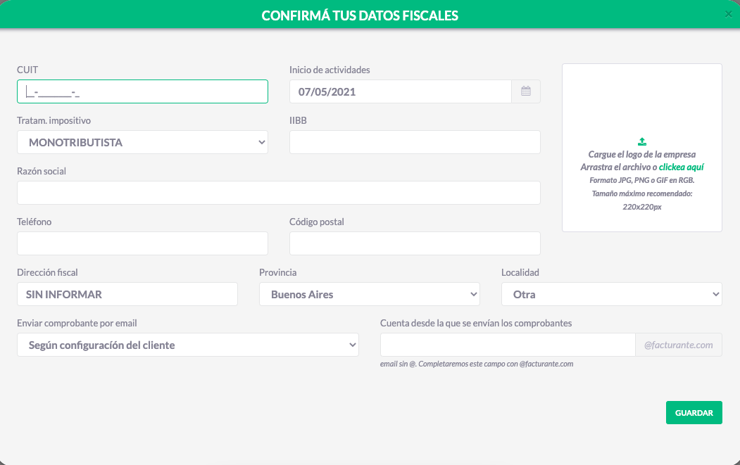 Confirmá tus datos fiscales. Facturante autocompletará los datos vinculados a la CUIT que ingresaste en el registro. Solo tenés que verificar que todos sean correctos. Esto es importante porque serán los que aparecerán en las facturas que emitas.