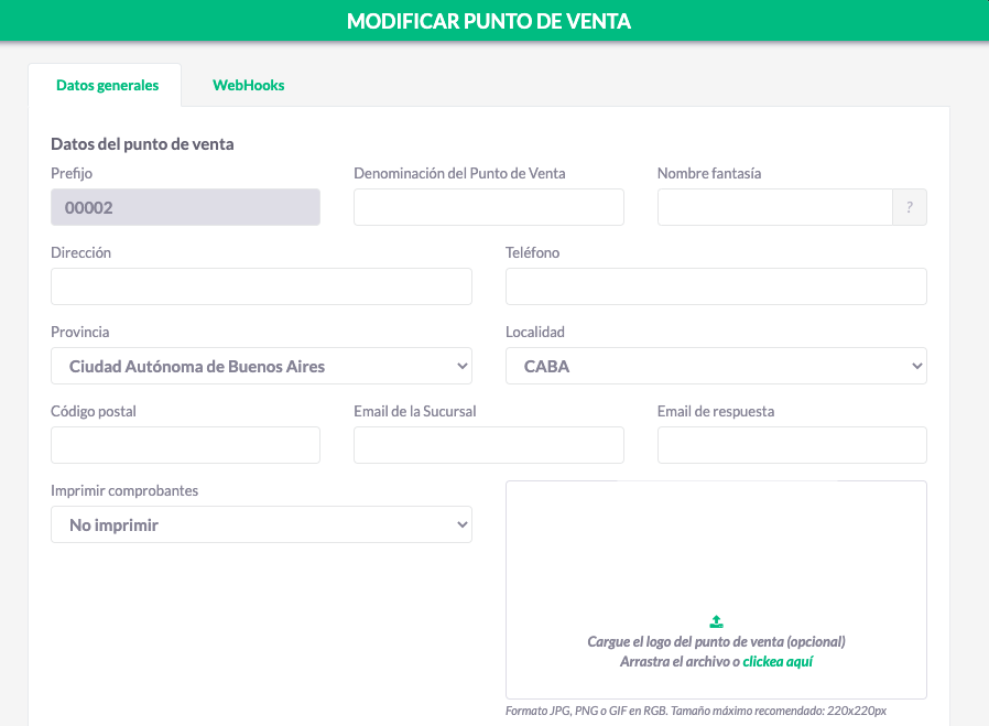 Dirección: Datos fiscales que registraste en AFIP en ese Punto de Venta, provincia, localidad y CP del mismo.